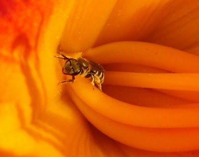 A little bee inside a lily, that is.