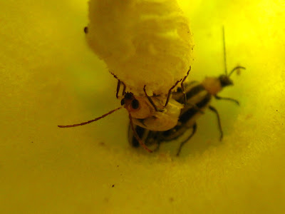 I found these little beetles deep in the inner sanctum of a pumpkin flower.