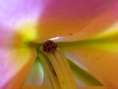 Inside a lily flower, this ladybug was like the coolest tiny Volkswagen parked in Mother Nature's psychadelic garage.