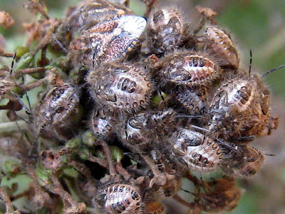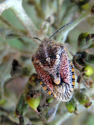 I found a family of hairy stinkbugs at the arboretum today. I've never seen this kind before. I submitted it to Bugguide to confirm if it's Prionosoma podopioides.